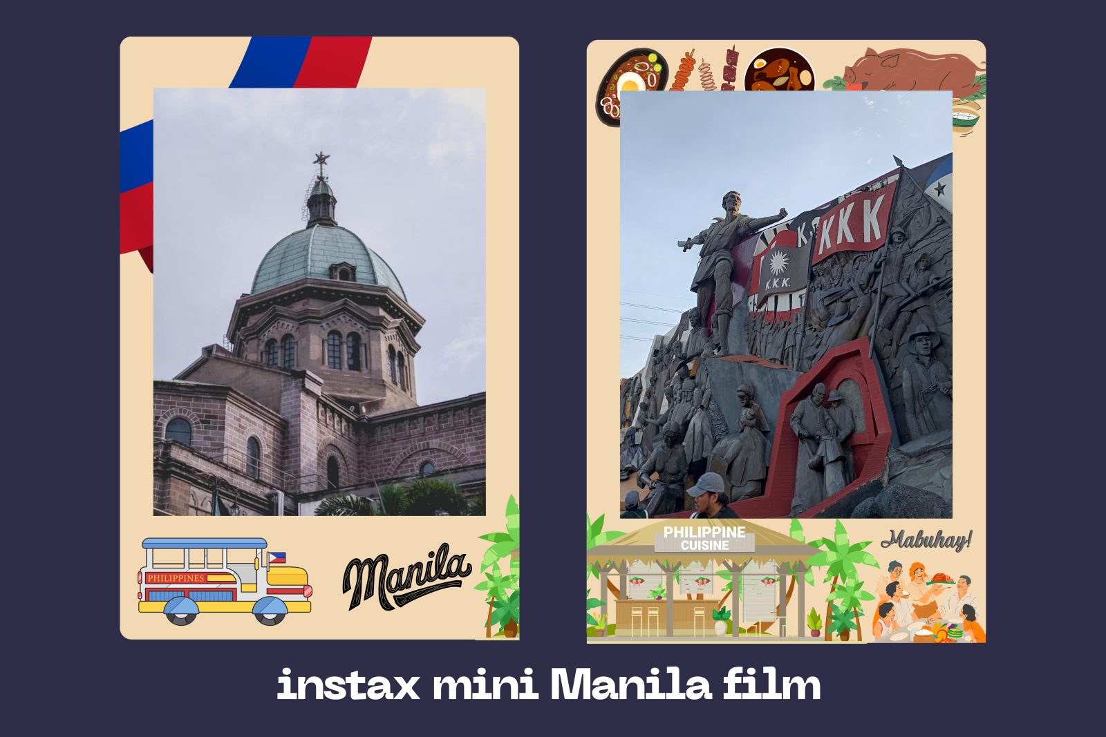 If I could design my own film, I’d go for a Manila-inspired Instax Mini film that features Filipino historical landmarks, cultural illustrations such as local food or delicacies, and colorful festivities that we celebrate. For the base, I’d choose a warm beige shake to bring out the vibrant colors of the illustrations.